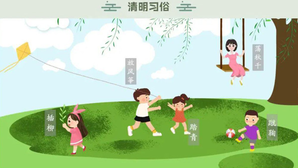 清明節(jié)的習(xí)俗是豐富有趣的,講究禁火、掃墓,還有踏青、蕩秋千、蹴鞠、打馬球、插柳等一系列風(fēng)俗體育活動。相傳這是因為清明節(jié)要寒食禁火,為了防止寒食冷餐傷身,所以大家來參加一些體育活動,以鍛煉身體。因此,這個節(jié)日中既有祭掃新墳生別死離的悲酸淚,又有踏青游玩的歡笑聲,是一個富有特色的節(jié)日。